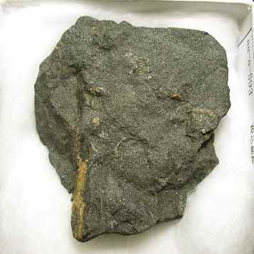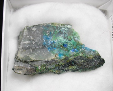 | 1936年に論文発表された日本産新鉱物。原産地である手稲鉱山にちなんで命名されました。この標本は数年前に話題になった産地のもの。かなりリッチに手稲石が含まれており、しみ状の本鉱が裏面にも見られます。マックアルパイン石などを伴っています。 | |||