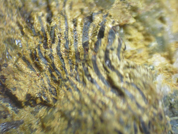 | 細かい結晶が集まって、一見すると縦じまのように見えます。 | |